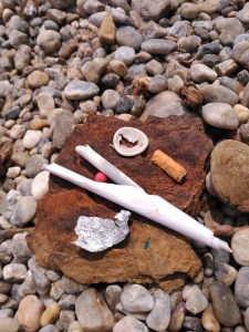 trozos de plástico encontrados alrededor de mi toalla en la playa de Port de la Selva